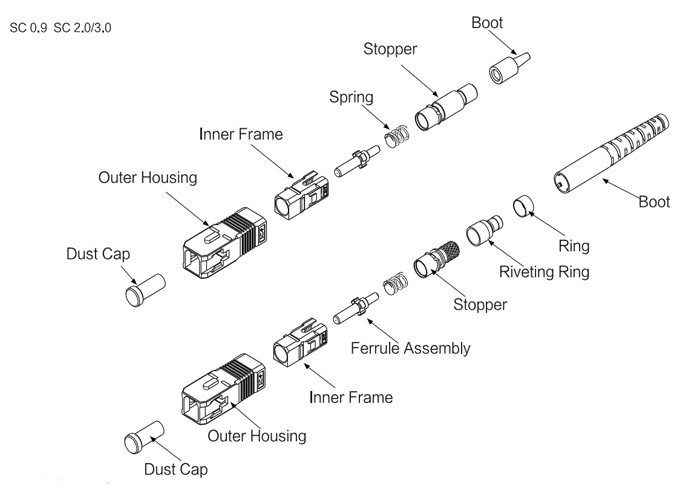 | نهاية الموصل | SC / PC ، SC / APC ، LC / PC ، LC / APC ، FC / PC ، FC / APC ، ST / PC ، E2000 / PC ، E2000 / APC ، MU / PC ، MTRJ / أنثى ، MTRJ / ذكر ، MPO / MTP ، DIN / PC ، SMA / PC ، D4 / PC | |||