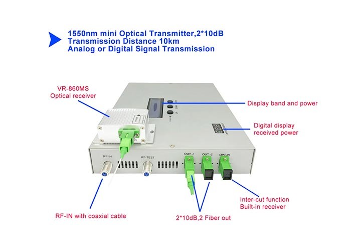 جهاز إرسال بصري صغير الكيبل التلفزيوني ثنائي الإخراج 10dbm 1550nm الارسال البصري