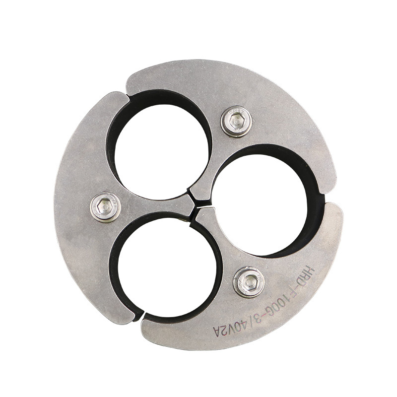 Triplex duct plugs are split plugs for sealing around, organizing, and supporting up to three or four subducts, pipes, or cables. The plugs are designed for use in round openings such as conduits, conduit fittings, and core-drilled wall penetrations. Effective long-term water-tight and air-tight seals, these products also prevent mud, backfill, and slurry from entering handholes, manholes, and buildings during the construction process.