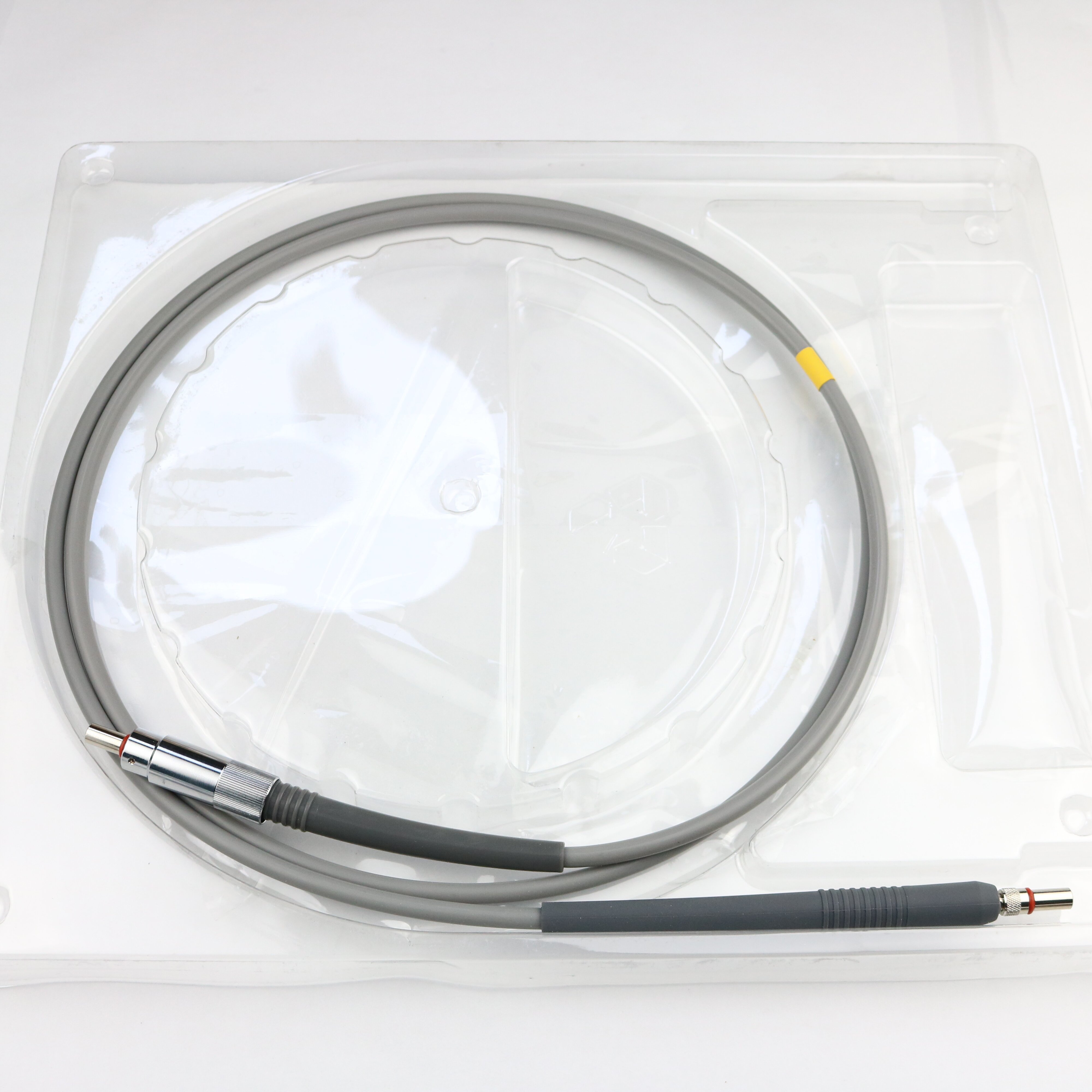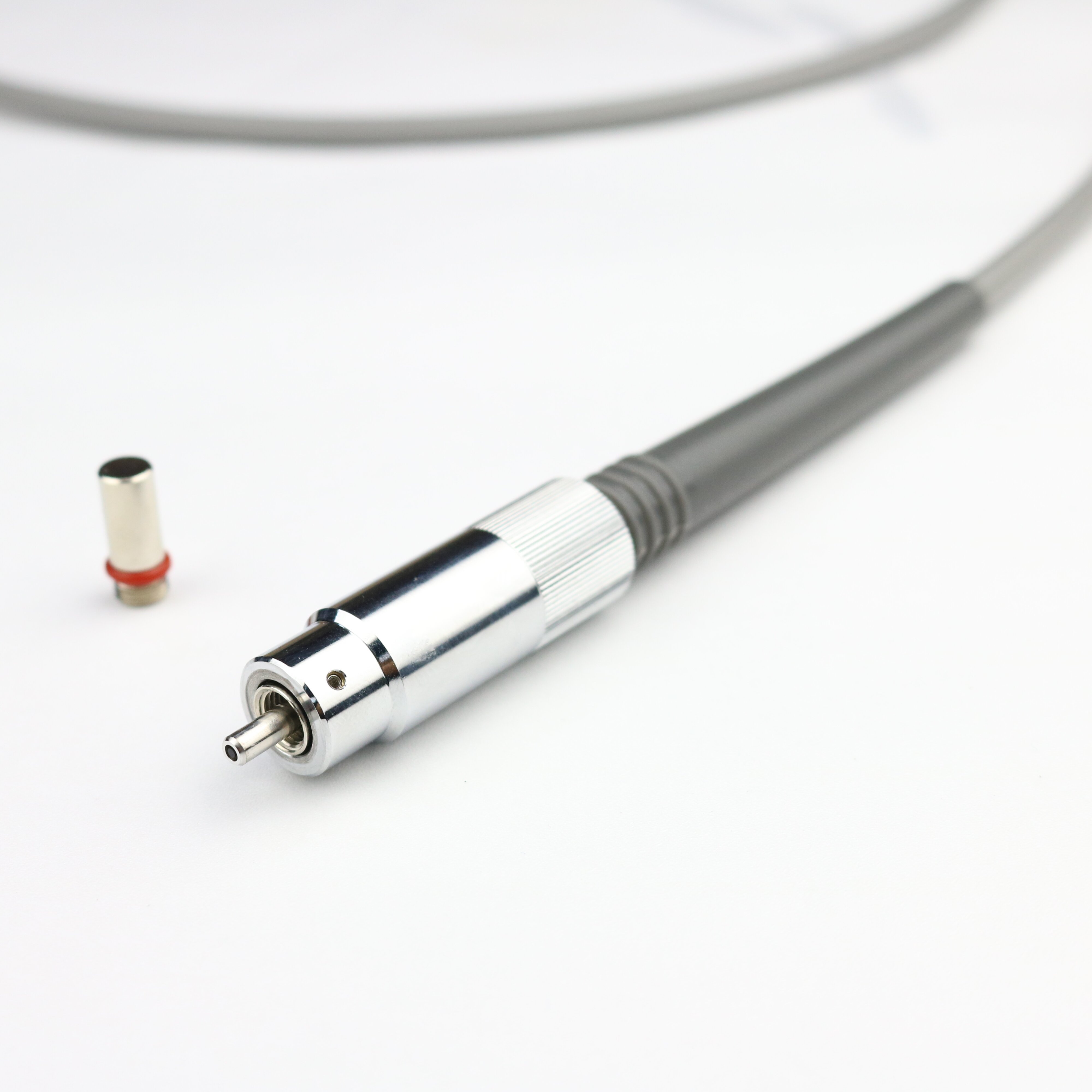 تحتوي غالبية الكابلات على أنابيب تفريع PVC برتقالية (Ø3 مم)، بينما يتم تغليف ألياف النواة Ø1500 µm في أغلفة من الفولاذ المقاوم للصدأ (أو مغلفة بالبلاستيك). نوصي باختيار أغلفة من الفولاذ المقاوم للصدأ عند استخدام الألياف ذات أقطار النواة الكبيرة (≥Ø1000 µm) أو NA عالية (≥0.50) في التطبيقات الحساسة للضوء، حيث يسهل على الضوء المحيط الشارد اختراق أغلفة ألياف PVC Ø3 مم. بدلاً من ذلك، يمكن شراء كابلات توصيل مخصصة تستخدم أنابيب التفريع السوداء أو المصنوعة من الفولاذ المقاوم للصدأ، من أجل تقليل الضوء الشارد الذي يدخل إلى الليف.